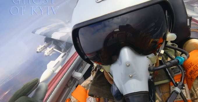 照片描绘了一个飞行员,被称为“鬼的基辅,”戴着头盔和氧气头盔和坐在一架米格- 29战斗机的驾驶舱,指着导弹安装在底部的翅膀。这是副标题,”你好,占领者,我到达了你的灵魂!“既然弗拉基米尔•普京(Vladimir Putin)入侵乌克兰两周前,故事的“鬼”成倍增长。据报道,一个战斗机飞行员负责十取下俄罗斯的飞机,一个惊人的单独实体的性能。