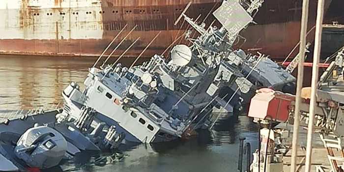 根据这艘船半淹没的照片,这艘船被故意摧毁,以防止它滑入敌方领土。此外,也有可能俄罗斯的干预是罪魁祸首,但当时似乎不太可能。