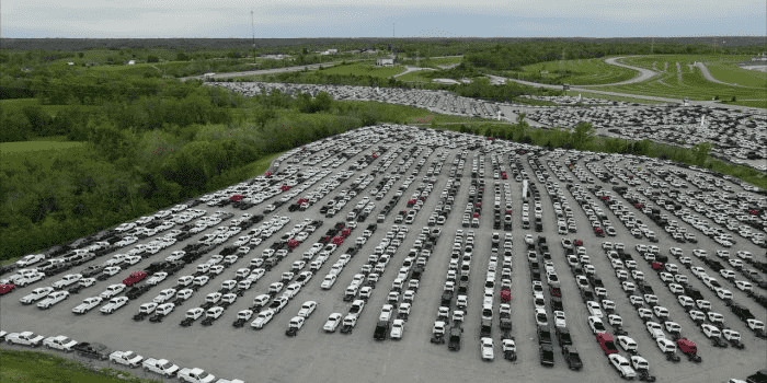 肯塔基高速公路以东的辅助停车场只是一个开始。现在,赛道周围环绕着数千辆从未冠名的超级皮卡。这清楚地表明,由于需求远远超过生产能力,福特和国内外许多其他公司都继续面临着这样的问题。
