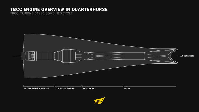 用于军事和商业用途的四分马飞机已经从美国空军获得了6000万美元的启动资金。该飞机的飞行速度为5马赫,飞行距离为4600英里,将使用TBCC(涡轮联合循环)发动机,该发动机是在商用GE J85涡喷发动机的基础上建造的。