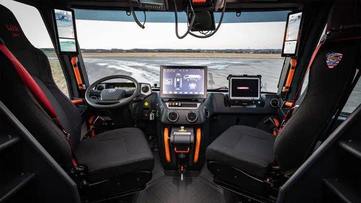 高科技宽敞的内部功能显示和数字镜子更好的观点在整个卡车。有LED照明和水平指标对水和泡沫。电气传动系统轻松处理陡峭的山坡,所有车轮转向意味着更小的转弯半径和蟹模式让卡车容易绕的东西。