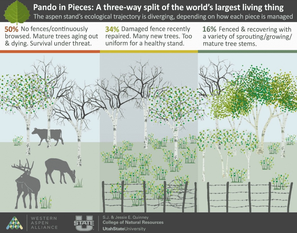 来自犹他州立大学的一位生态学家提出了一种悲观的可能性:世界上最大的生物之一,一群基因相同的树木共享一个根系,历史上第一次分裂成多个不同的部分。