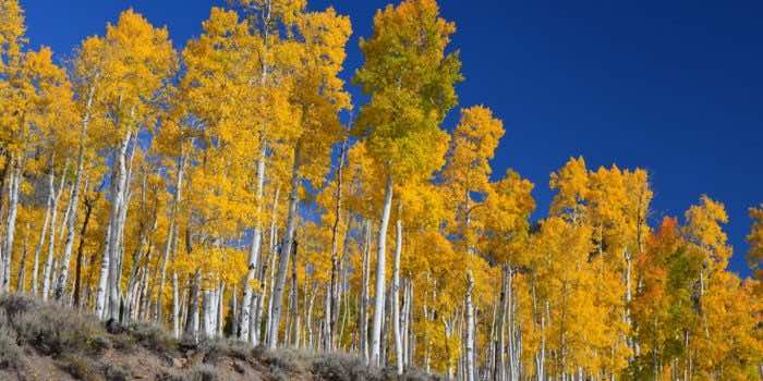 这片独特的白杨树群被称为潘多(Pando),于20世纪70年代中期首次被发现。基因测试显示,在100英亩(40.5公顷)的殖民地里,每棵树都是彼此的克隆体。这意味着它们有一个巨大的地下根系。