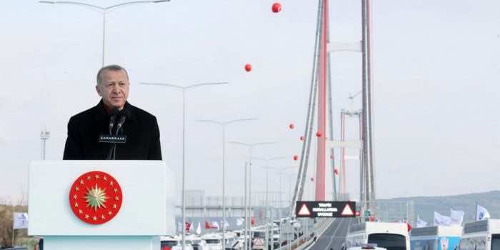 星期五,土耳其总统雷杰普·塔伊普·埃尔多安(Recep Tayyip Erdogan)揭幕了世界上最长的悬架桥,跨越了土耳其东北部的达达内尔海峡。