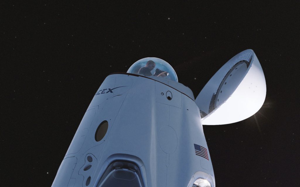 SpaceX的官方推特周一一早账户发布了这张照片。其他照片显示机组在不同的设置,包括特斯拉模型X汽车运输到发射台和船员龙飞船。
