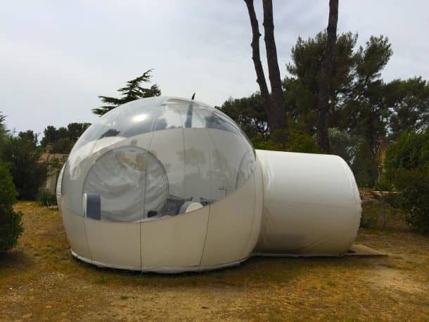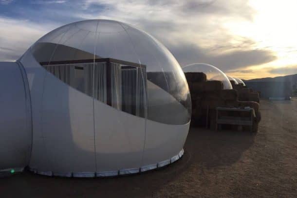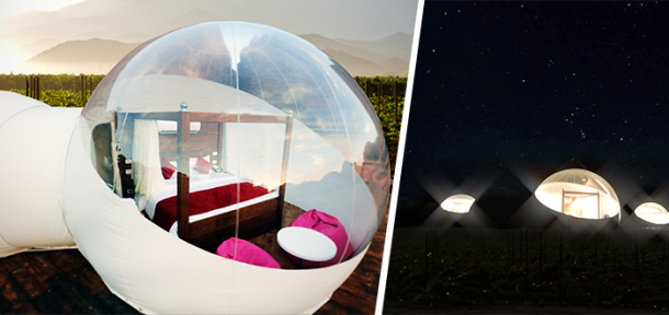 露营酒店为典型的帆布帐篷露营提供了新的转折;这些房间从根本上冒出了气泡的帐篷,上面有透明的天花板,可让您凝视着在晚上迷人的500万星。该酒店承诺,您将全神贯注于葡萄园和星空,而无需忽略您的奢侈品需求。