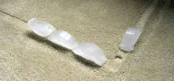 将冰块加入地毯上的地毯,桌子上留下了地毯织物的织物。浸泡的织物以后可以使用汤匙固定。