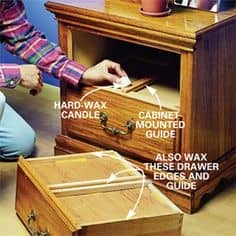 如果您在粘着的抽屉中挣扎,那就不再挣扎了。在抽屉角上摩擦的肥皂或硬蜡可以使它们的运动光滑。
