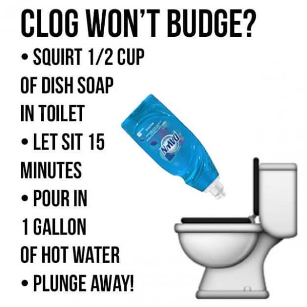 可以通过将液体肥皂倒入厕所,可以润滑厕所的堵塞。让它坐在冲洗前。