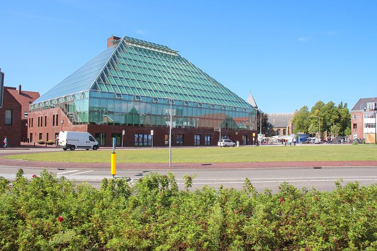 这个华丽的书山是一个图书馆在荷兰的市场广场。它成立于2012年,堆成金字塔形状。书架是由回收的花盆,在整个空间设计。MVRDV策划的,咖啡馆是顶部的形成,并显示玻璃透明的内在美书的位置是在外部播出。