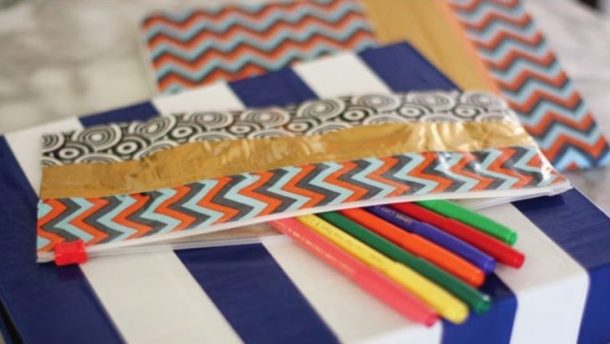 你可以用彩色胶带装饰拉链袋,给孩子们做铅笔袋。