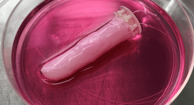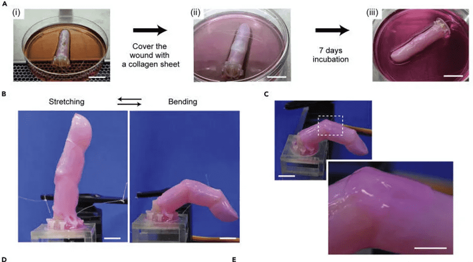 科学家们将一根普通的机器手指浸泡在一个充满特定液体的圆柱体中,这种液体为自然皮肤的生长提供了适当的条件。