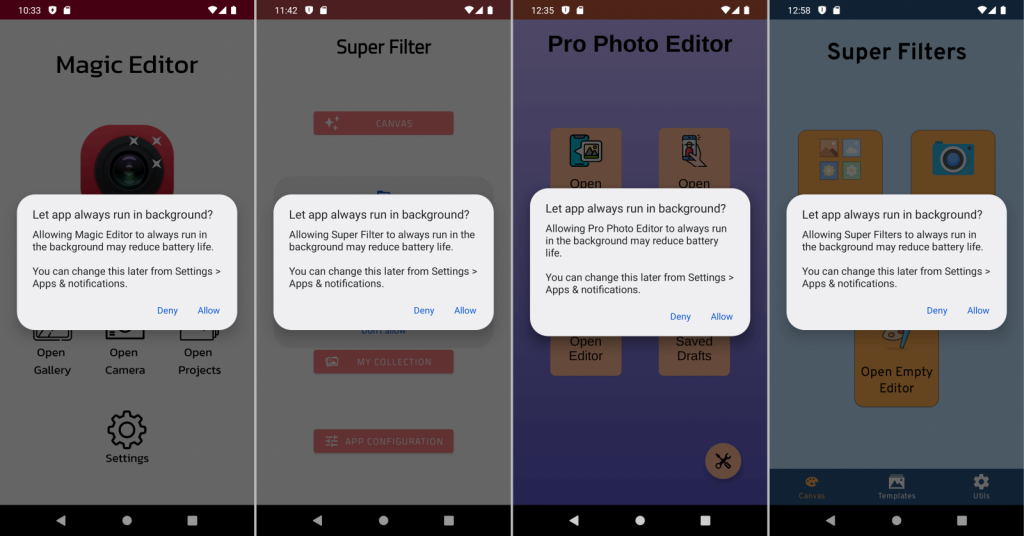 实际上,Google通常在将其上传到App Store之前仔细检查应用程序软件,但是这次,大量此类应用程序没有引起注意。韦伯博士在他的每月威胁报告中强调了这些威胁,表明“广告软件木马”已纳入这些Android应用程序中。这些应用程序主要类似于“照片编辑软件,键盘和实用程序应用,墙纸收集应用程序等”。许多这样的应用程序复制了其他重要系统应用程序的模板,以表明自己是可信的,并说服了用户安装它们而不质疑其完整性。