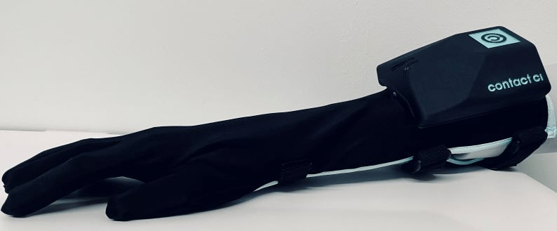 “接触CI在混合力反馈和振触觉反馈方面做得很好;在2023年消费电子展的新闻发布会上,美国空军模拟器首席创新官玛格丽特·默克尔说:“他们已经能够在使用无线、轻量级可穿戴手套的情况下,在VR驾驶舱内创建复杂的有形互动,比如开关任务。”