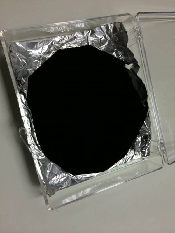 Vantablack是由英国萨里郡三年前纳米系统,一直是许多科学和艺术作品的一部分。创建了色素的一系列微观垂直管陷阱任何类型的光,因此吸收的99.96%做任何三维物体涂上它看起来像一个黑色的二维平面。