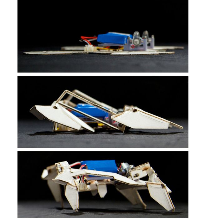 一个人可能会称其为机器人和折纸的合并;爱游戏备用少量的电力必须通过柔性电路夹在纸张和形状内存聚合物之间的柔性电路。这导致零件的折叠和转换,使其转换为工作形式。由于船上有一个微处理器,机器人能够控制这些零件的折叠/展开的顺序。这使机器人可以非常优雅地组装。