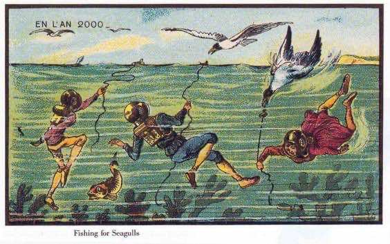 这些1900年的法国画作展示了艺术家们对下个世纪的看法。在那个时候,人们没有合适的飞机、电脑甚至收音机,我们可以看到,他们甚至没有机会想象我们在2000年的生活会是什么样子。但是,看看他们是如何看待未来的还是很有趣的。