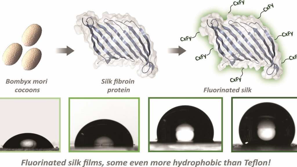 塔夫斯大学的研究人员想出了一个方法开发silk-based材料不会附着在水和显示不沾属性比目前可用的。