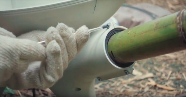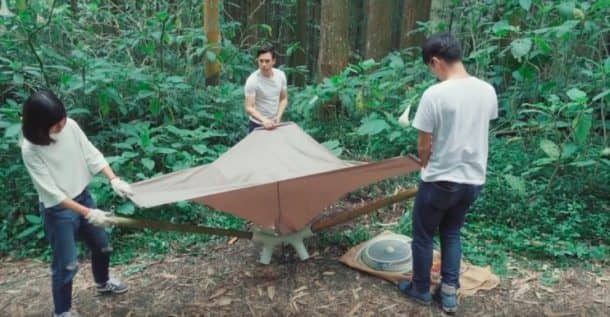这很简单。水是由Aquiair收集的,该水域横向延伸到预制的竹结构上。Aquiair使用风扇和小离心机,该离心机通过重力通过管子引诱水蒸气进入下面的水桶。整个结构易于拆卸和手工重新组装。将竹子添加到设计中,以增加重量和灵活性。