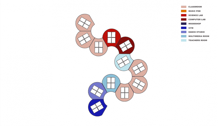 Beehives以允许扩展的形式激发了学校的设计。能够在不同的豆荚状结构中设置,因此很容易将学校的建筑物放在一起。这些3D打印的豆荚很容易运输并可以放置。学校的设计非常适合在世界偏远地区建立,因为学校的建设并不是一件容易的事。