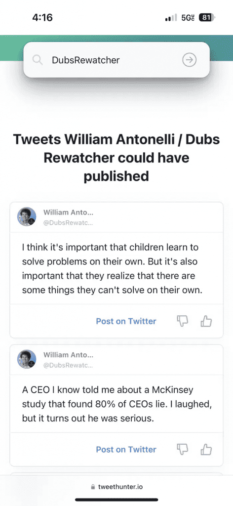 推特猎人的人工智能推文生成器是一个免费的工具,分析你的推文,然后尝试生成一些新的帖子,看起来像模拟你写的东西。推特用户正在分享人工智能模仿他们的最佳尝试。
