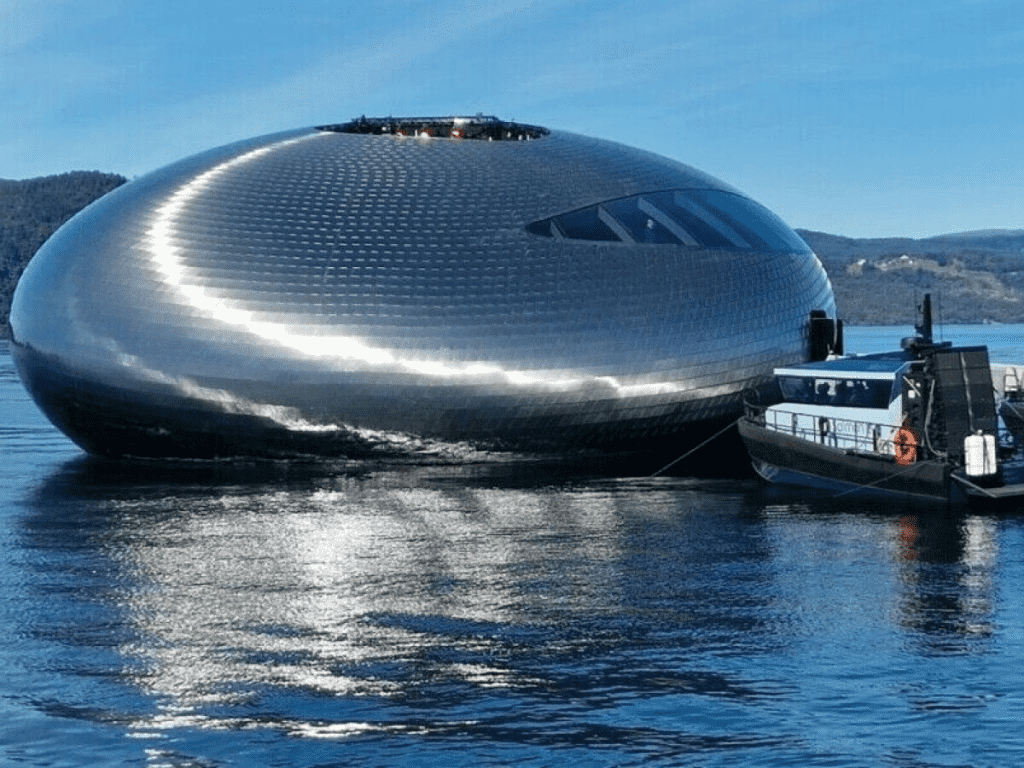谈论“鲑鱼眼”的规范,它的墙壁是由高质量的不锈钢材料和设计的方式演示了鱼眼睛的颜色。此外,整个结构由四层,包括一个位于水下。此外,这个浮动建筑重约1256吨,直径25米。更不用说,整个建筑的内部已经摊在650平方米。
