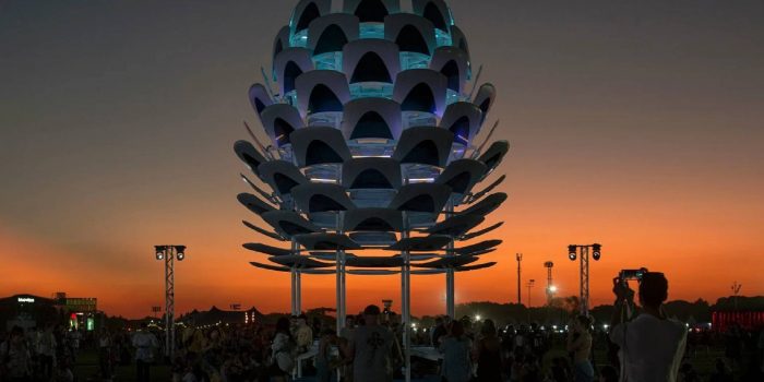 阿根廷设计公司El工厂化正常和导演马丁胡伯曼已经公布了一个迷人的安装由95大众高尔车头罩。名叫全胜,这意味着“汽车罩”在西班牙语中,雕塑中心像一个松果和作为一种艺术的背景和阴影聚集空间在布宜诺斯艾利斯Lollapalooza音乐节为欢庆节日。