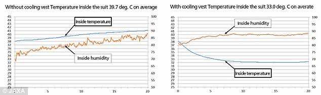 Jaxa最近宣布,他们正在限量销售这种“冷却”背心,每件售价590美元。冷却服通过油管和泵组成的网络在温度为4°C(39.2°F)的温度下循环冷却液。美国宇航局称,一升水可以冷却该背心30分钟左右。这种背心还能立即吸收和蒸发汗水,并且完全可以机洗。