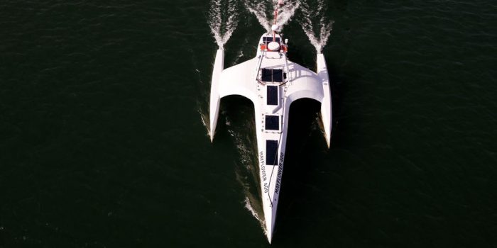 经过长时间的考验,该船已经达到了这一分数,现在可以从英国到美国的长途旅行。在途中目的地时,自驱动的船将有助于环境数据收集。