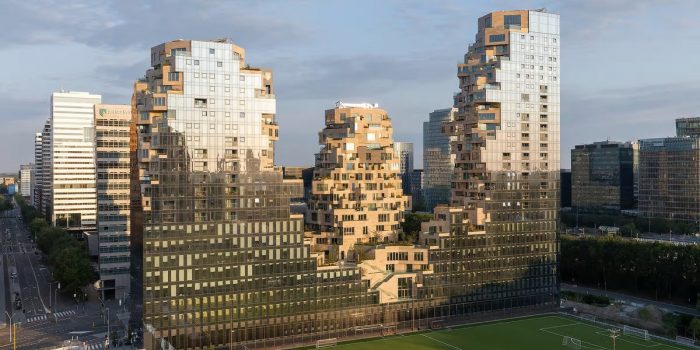 值得注意的是,阿姆斯特丹的商业区被选为建造这一杰作的地点,它包括不同的办公室、公寓和零售商店,坐落在三座设计华丽的塔楼内。三座塔相互连接,分别高67米、81米和100米。建筑师在建筑物的外部使用了玻璃镜子,在塔的内部刻有天然石头。值得注意的一件有趣的事情是,为了扩大外部景观的视野,人们使用了特殊的软件。