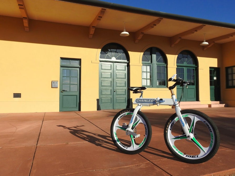 肖恩·陈是佛罗里达州威尼斯的一位发明家,他提出了他所谓的“无链自行车”的想法。“这款创新自行车看起来与传统自行车非常不同,它的座位放在后轮上方而不是中间。”曲柄位于自行车的后轮上,也包含一个内部传动系统。因此,踏板的一次旋转不等于一个轮子的旋转,就像在便士farthing。你可以停一段时间,让自行车继续漂移。