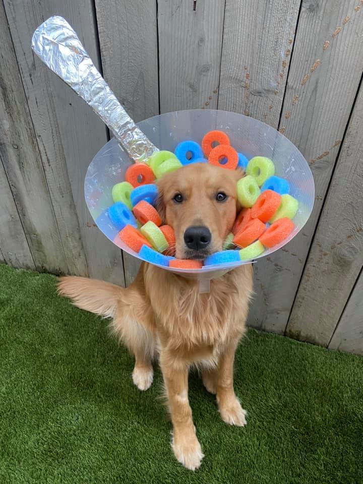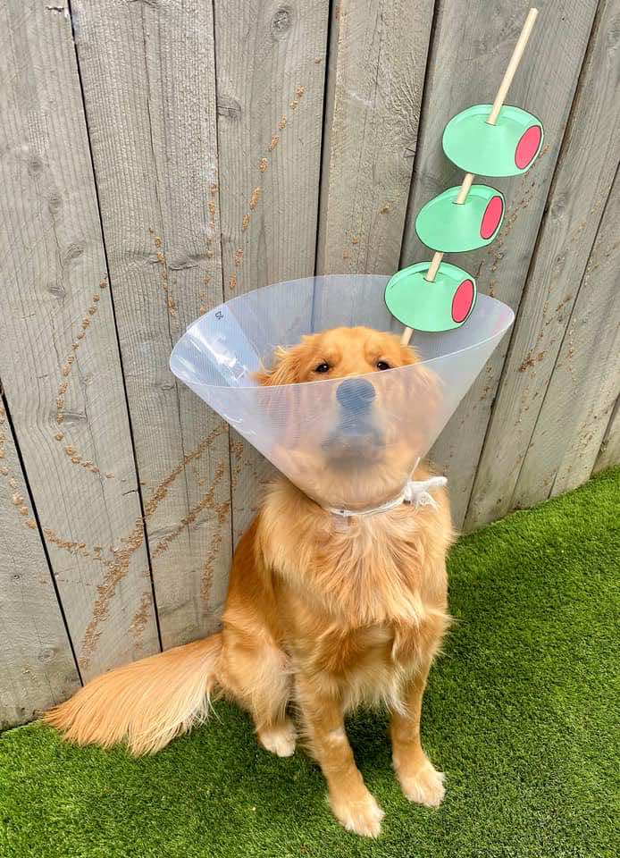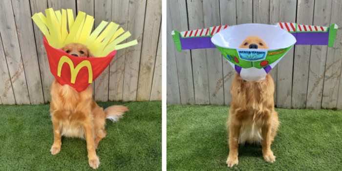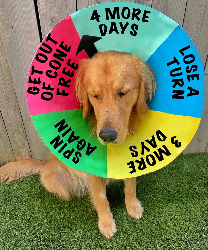 幸运的是,芬恩的主人是一个有创造力的人,没有选择让她的狗伤心和沮丧。她为他装饰了一个新的花式狗甜筒,在他被要求戴甜筒的所有日子里,让他高兴地摇尾巴。