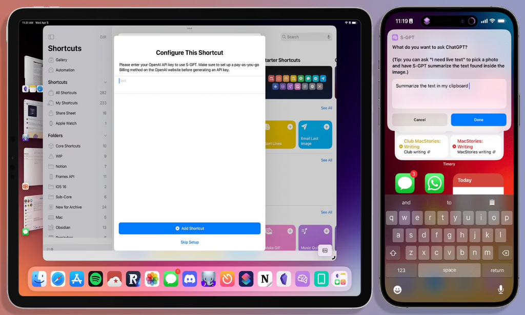 ChatGPT OpenAI开发的人工智能语言模型,已经被整合到iPhone应用程序开发人员使用一种新的方法发现的。通过使用快捷键应用程序,开发人员可以创建自定义操作发送文本ChatGPT API和接收类似人类的反应,铺平了道路更自然、直观的方式使用移动应用程序。