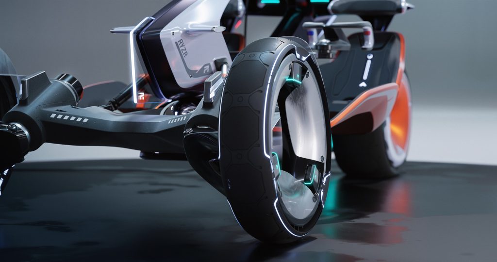 未来派设计是由伦敦的SAIC Design栩栩如生的。Ryzer Sports双胞胎座椅被中央脊柱隔开,让您欣赏周围环境和景色,而这是传统汽车中无法使用的。前轮像普通汽车一样保持分开,但可以根据用户的需求进行调整后轮,从而使他们对车辆有更多控制权。