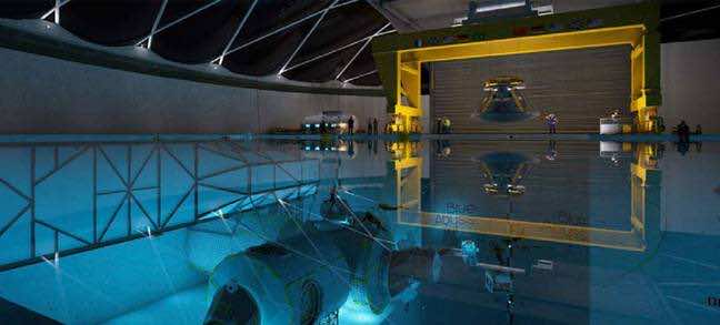 Blue Abyss正在建造一个游泳池,他们称其为世界上最大的室内游泳池,其能力容纳150万英尺(42,000平方米)的水,并将有助于进行一系列测试。