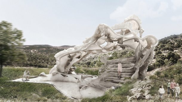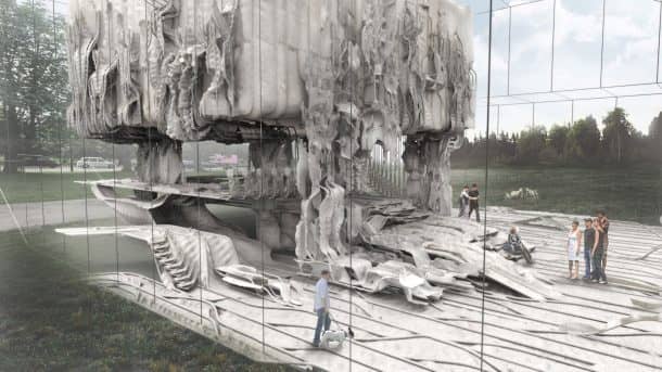 大师级学生首先使用复合材料来建造适合日常使用的椅子,然后是进入凉亭的原型墙。