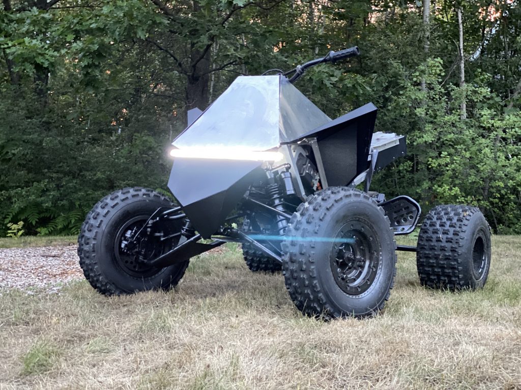 为了启动这个项目,他们买了一辆2008年的雅马哈猛禽(Yamaha raptor),以及一些零配件。在项目一开始,伯努瓦就想用电力系统改造迅猛龙。然而,萨洛斯基做得更好,他给了它一个特斯拉赛博四边形的形状。该团队在发给Electrek的电子邮件中表示,“他们只打算改造它,然后史蒂文提出要设计它来复制特斯拉的Cyberquad。”