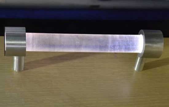 他们最终成功地设计了一个圆柱形的把手,由透明玻璃制成,通过支架两端固定。其中一个支架装有一个LED灯泡,可以发射紫外线。LED不依赖外部电源,而是通过安装在门上的变速箱为自己发电。变速箱内的设备将门的运动转化为电能,然后由LED灯使用。当一个人用门把手移动门时,这个装置就会亮起来,有效地杀死在接触过程中传播的细菌。