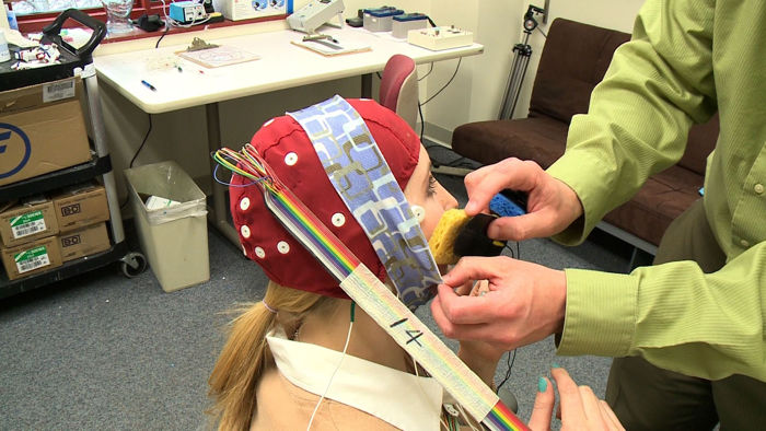 两人决定检查是否有可能控制大脑对错误的电生理反应。这些测试的一部分是在定向电流应用的帮助下检查这些响应是否可以减少或改进。最终结果是一个盖子,该帽子包括一个弹性头带,以及一堆电极,与脸颊和头部的冠相连。