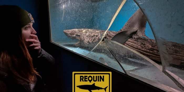 视频显示了腐烂的一个小礁鲨鱼在一个破碎的展示柜。