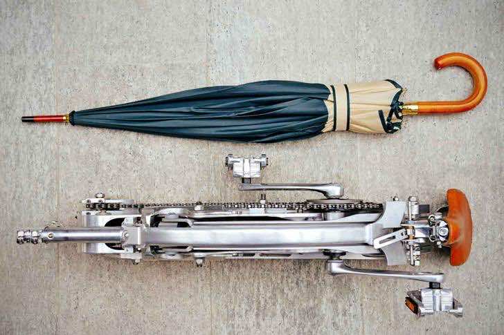 然而,我们有一位意大利设计师提出了一种完美的可折叠自行车的设计,这种自行车带有全尺寸的车轮,并且仍然可以折叠成一个和雨伞一样大的包裹。你可以骑着它到目的地,然后把它折叠起来随身携带。这个模型没有链条;相反,它配备了一个集线器。再一次,它得到关注的原因是,尽管有能力折叠成伞一样小的东西,自行车仍然有完整的26″大小的轮子,这使它与众不同!