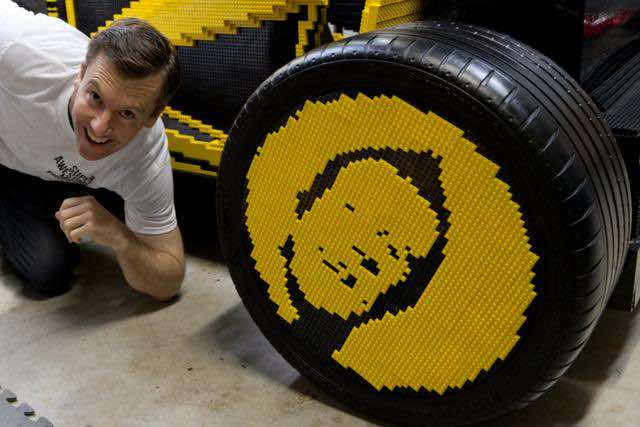 它确实是一辆由乐高积木制成的令人惊叹的全尺寸汽车。这是一位艺术家的艺术品。