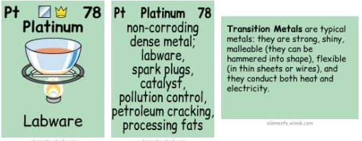 铂是科学家在实验室做实验时常用的金属。它也被用来制造汽车的火花塞,这种不腐蚀的金属也被用于污染控制。
