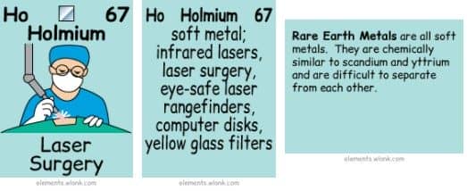 这种稀土金属很软,用于制造电脑磁盘和玻璃过滤器。用于外科手术的激光也是由钬驱动的。
