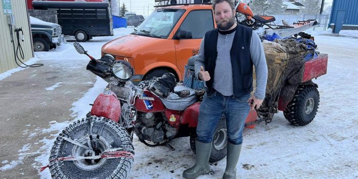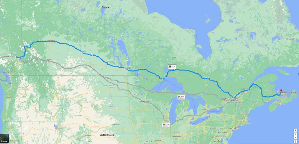 他等到2022年1月1开始客场之旅,访问期间他取得了近40000 TikTok追随者。他开始他的旅行100英里的房子在加拿大西部的一面,和他希望结束自己的旅程在爱德华王子岛,也就是尽可能远东。他只有一个小拖车连接着牛奶箱的齿轮,但被人邀请加拿大温暖的饭和偶尔的停留的地方。