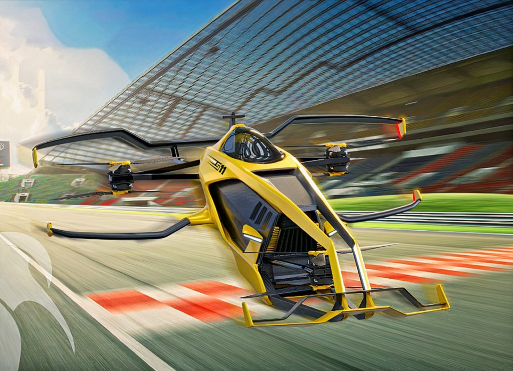 最近,一种新的飞行赛车概念开始出现,它类似于《星球大战》宇宙中的飞车。在2022年国际消费电子展上,法国初创公司Maca Flight公布了一款全新的氢动力飞行赛车设计。