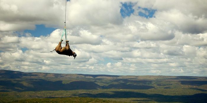 3吨的白犀牛是最濒危。只有在20000年他们在野外。最近,一项研究显示挂颠倒从直升机和重新安置他们可以帮助拯救他们。倒挂的物种在这项研究是黑犀牛,几乎重1.5吨和近似人口只有5000。研究的问题获得搞笑诺贝尔奖授予的《科学》杂志上研究年报荣誉项目”首先让人开怀大笑,然后让他们思考”。