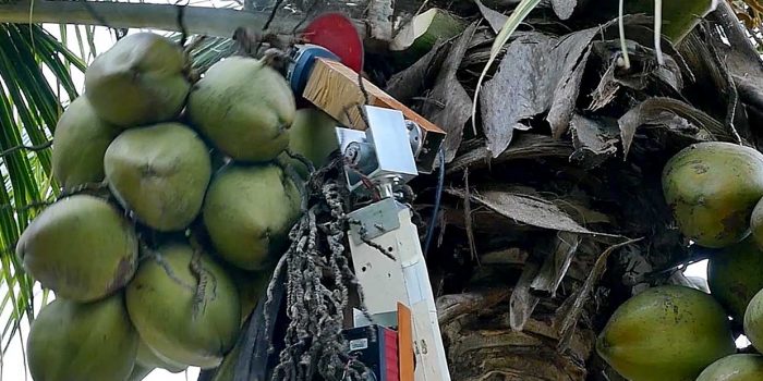 由于人口朝着技术解决方案和相关工作的发展,它造成了印度椰子收割者的短缺。这就是为什么科学家开始积极努力建立爬树木椰子储备机器人的原因,最终可能会填补空白。