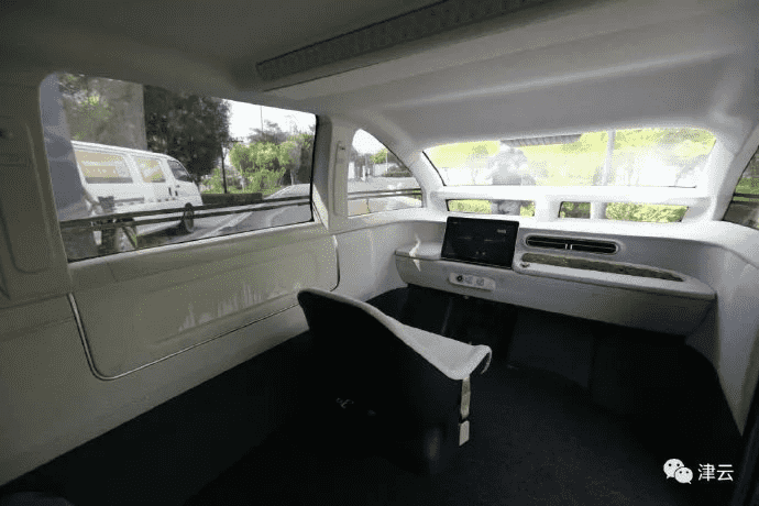 驾驶员区位于前面,只有一个巨大的触摸屏显示屏和下面的三个控制装置。从视频中可以看出,由于该车配备了4级自动驾驶系统,方向盘明显没有出现。