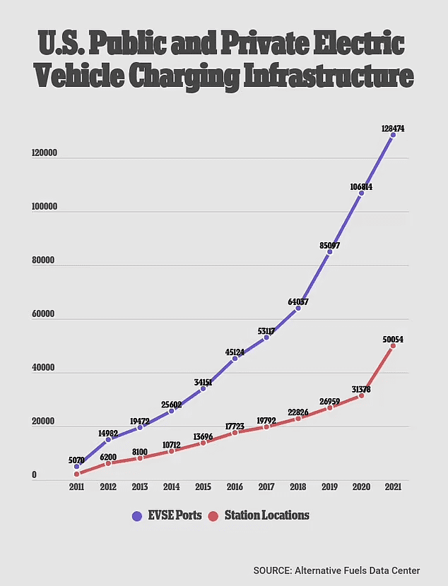 但是,汽车保险公司预计了一份报告杰瑞这说:“到2030年,预计将有3500万辆电动汽车在未来八年内每天安装约478个充电端口,以建立必要的基础设施来支持它们。随着注册电动汽车的数量的增加,充电基础设施是否可以跟上电动汽车需求的需求,还有待观察。”该报告进一步指出:“随着电动汽车制造的增加数量的增加,美国充电基础设施需要改变和适应越来越高的利率,以跟上新的电力未来。”